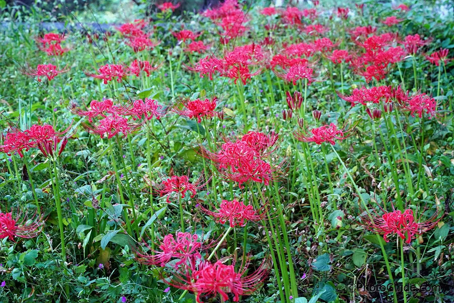 꽃무릇 개화 시기는 매년 9월 중순으로 이때를 전후하여 가장 보기가 좋습니다.