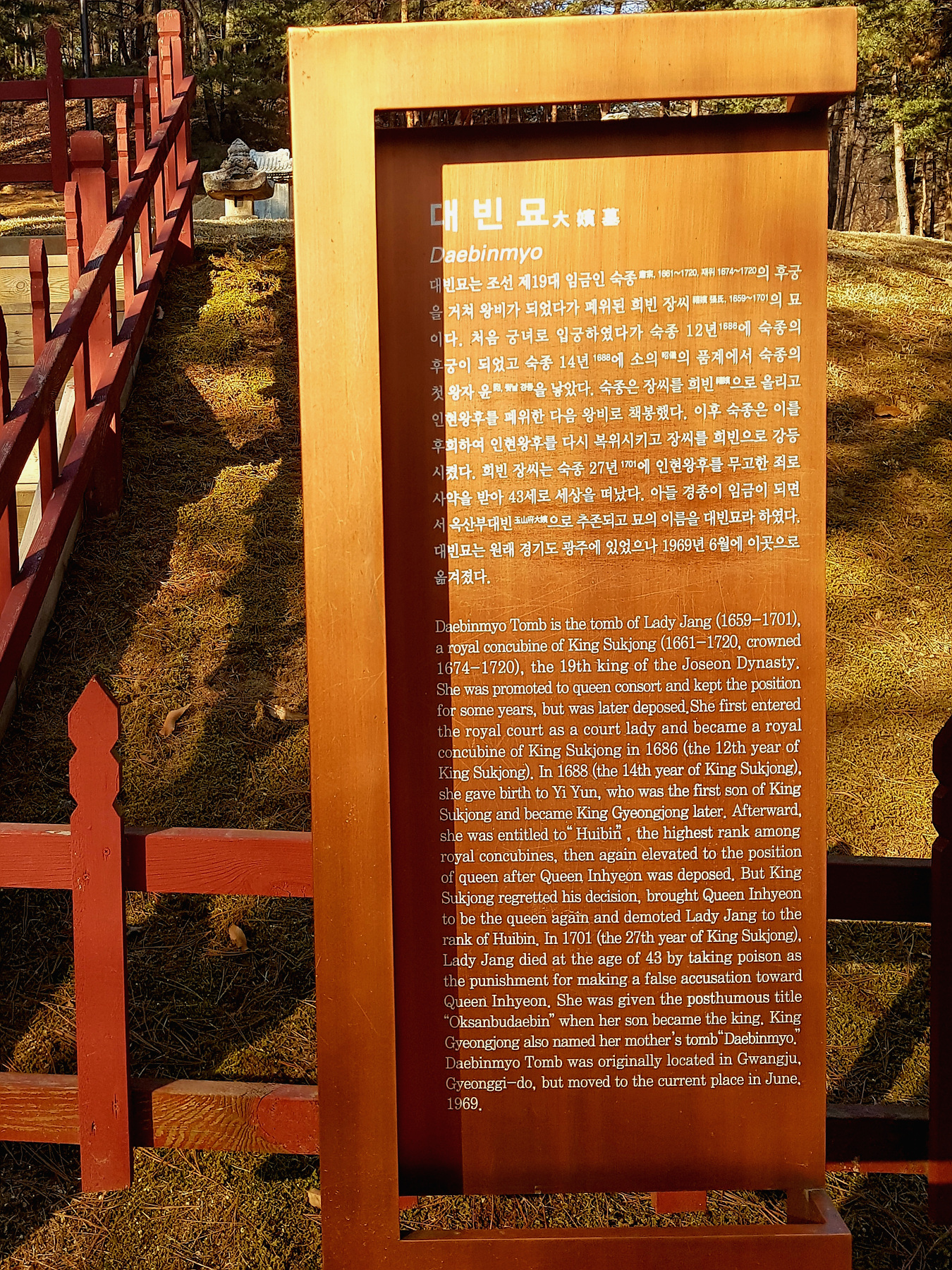 얼마전 서오릉에 가보니 장희빈의 묘가 있었다.