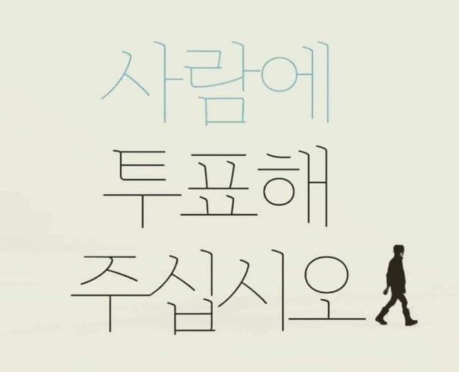 "사람에 투표해 주십시오"라는 문구가 등장한다.
