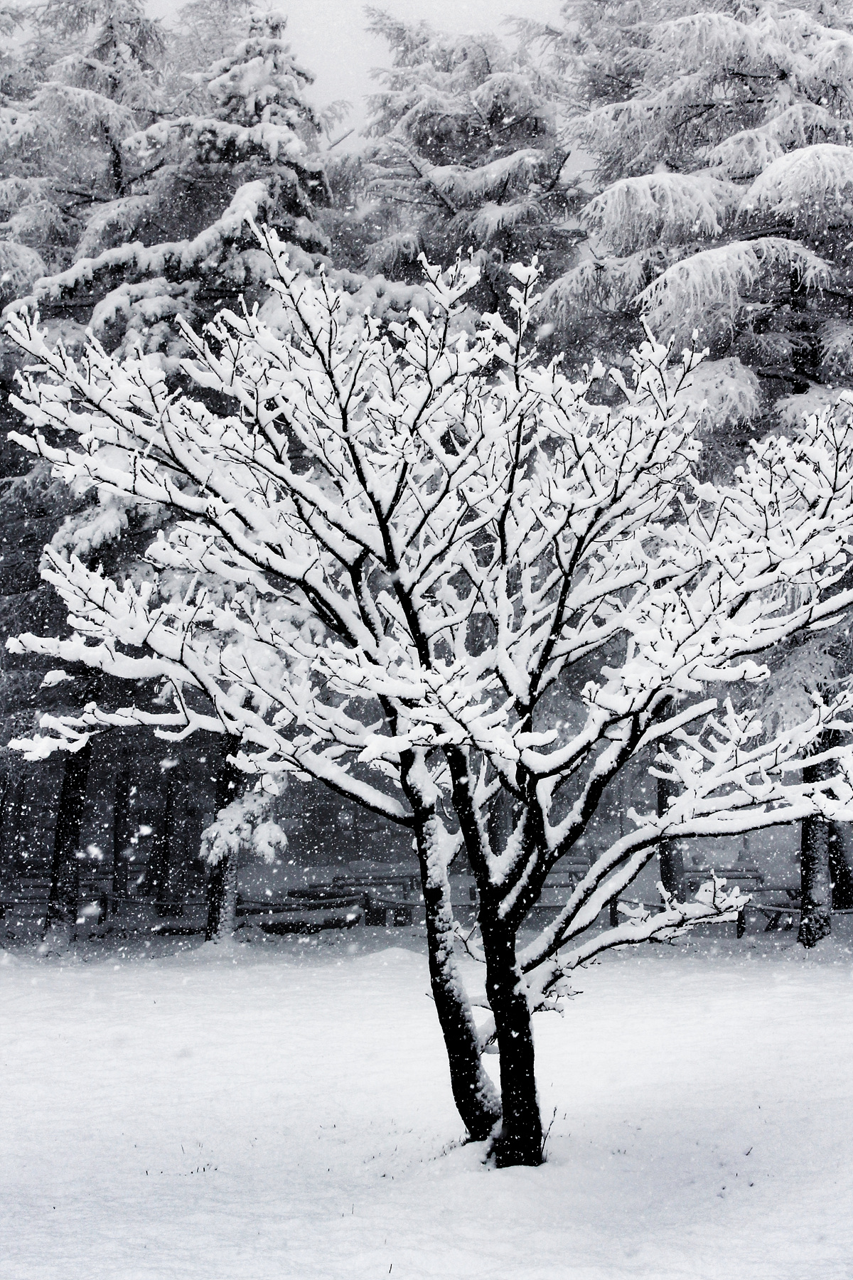 큰 눈이 내려서 모두 눈 속에 있습니다.