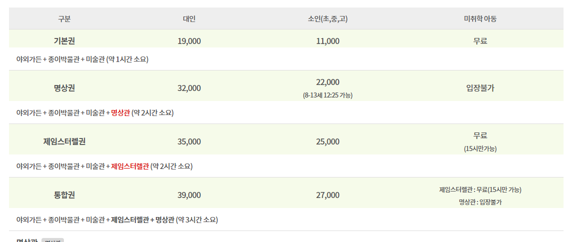 뮤지엄산 입장료 : 기본권 대인 19,000