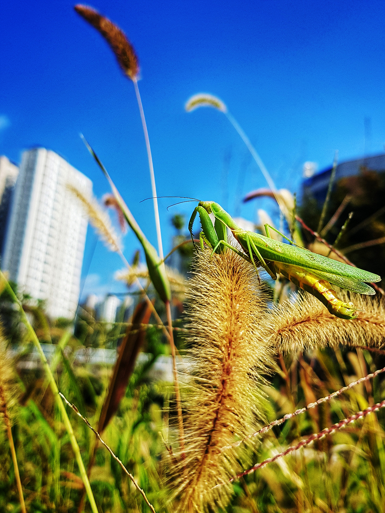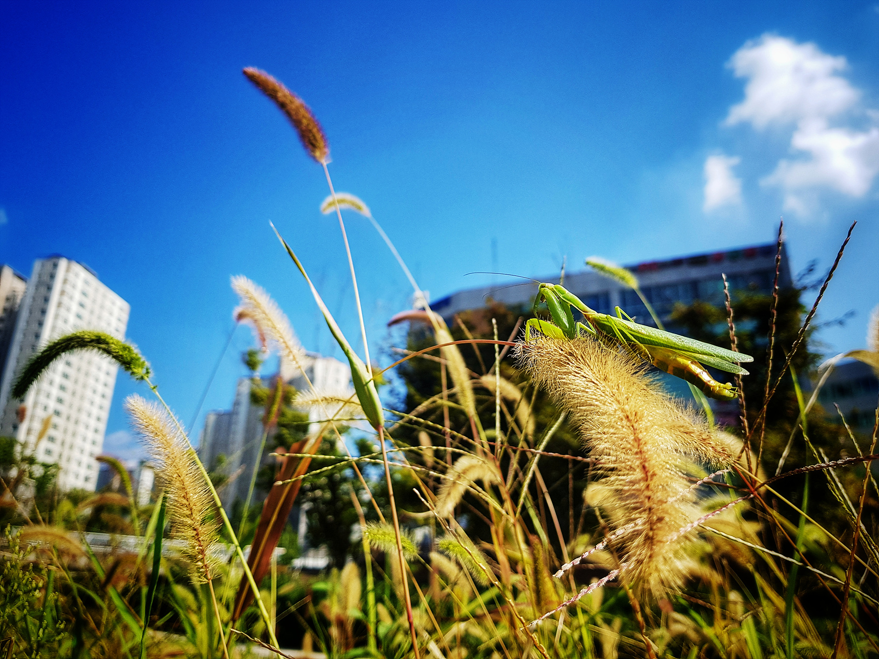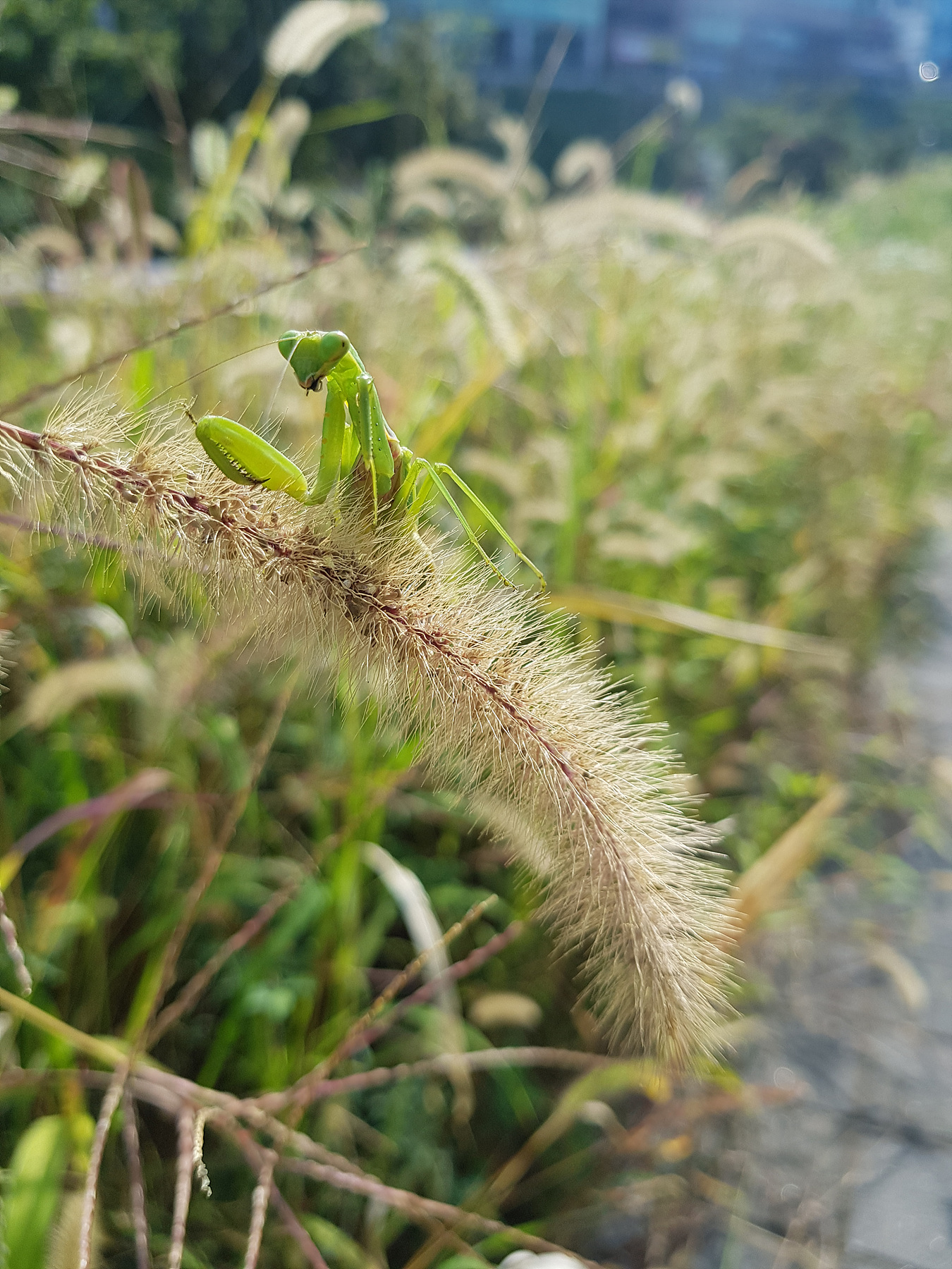 산들거리는 강아지풀 그 위에 가뿐히 앉아 있는 사마귀는 가을의 파수꾼 같이 보입니다.