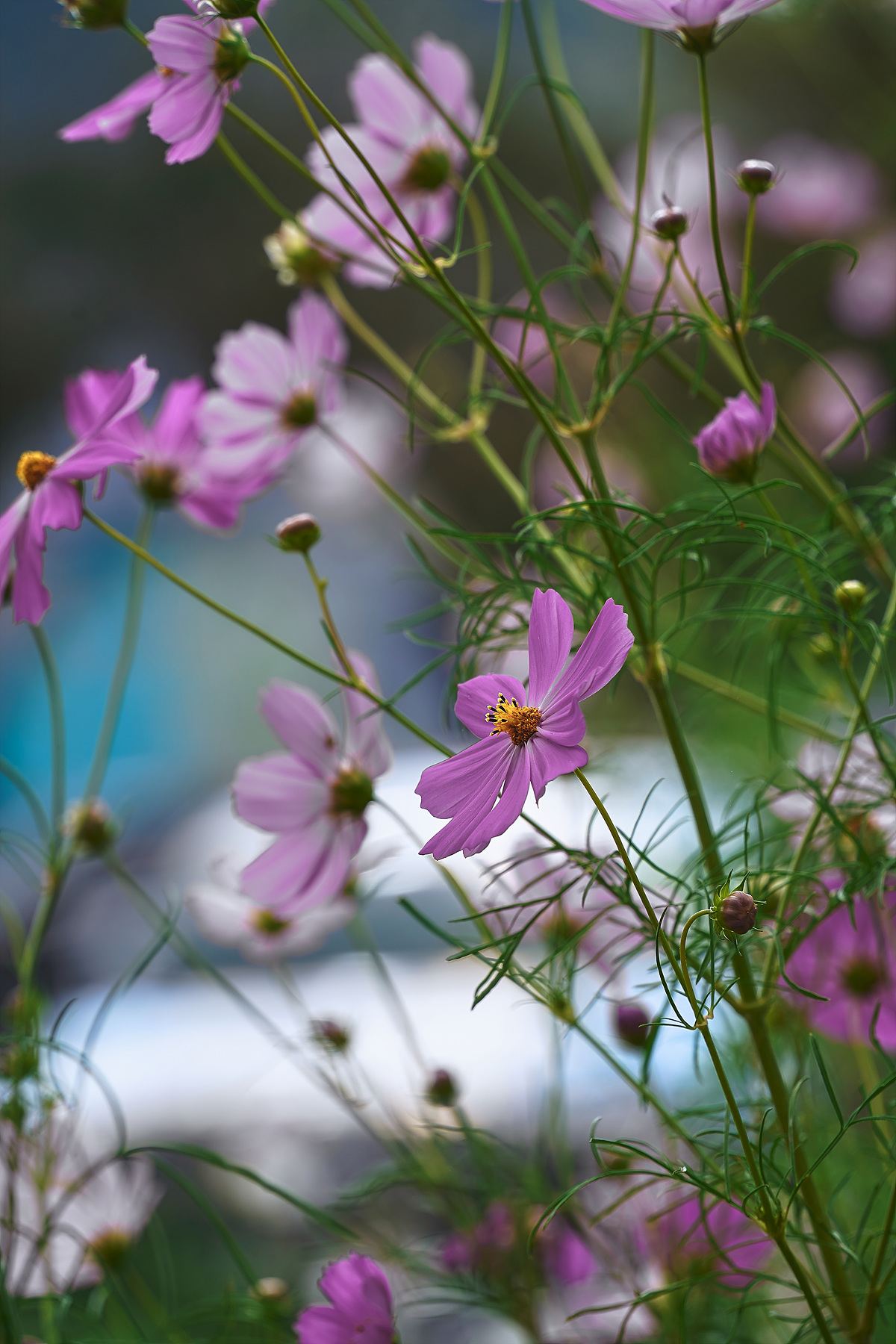 코스모스 사진을 찍을 때는 너무 많은 꽃들을 찍으려하기 보다는 꽃들이 피어난 모습을 잘 보고 조화롭게 찍으면 한층 보기가 좋습니다. 너무 많은 꽃들을 담다보면 시선이 분산되기도 하고 어수선하기도 합니다.