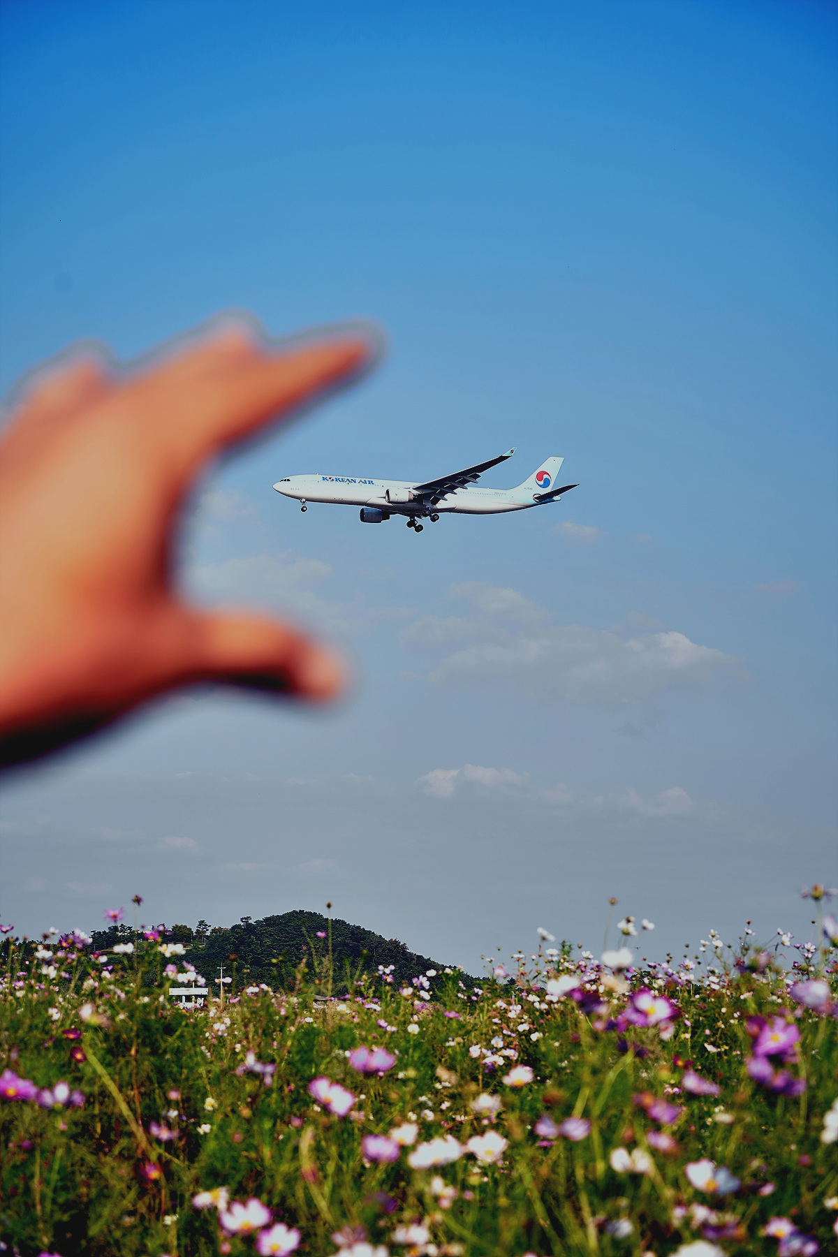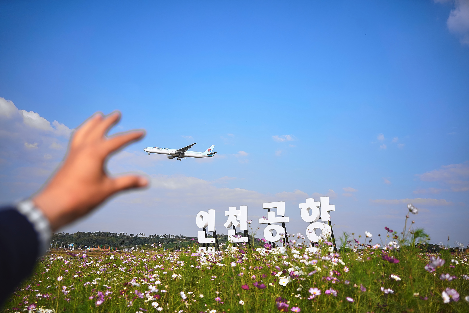 이곳에서는 코스모스가 활짝 핀 모습을 찍는 것도 좋지만 바로 가까운 인천공항 활주로가 있어 비행기가 뜨고 지는 모습을 포착하는 것도 재미있습니다.