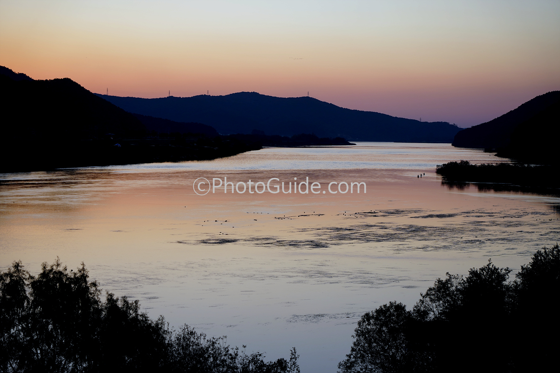올 한해가 끝나감을 알리는 가을의 길섶에서 붉은 노을이 지기만을 기다렸지만 갑자기 아름답던 구름은 온데간데 없고 그냥 평범한 일몰이 오고 있음에 다소 안타까웠습니다. 그래도 빼어난 풍광을 자랑하는 이곳의 저녁 무렵은 아름답기만 합니다. 이러한 섬강의 멋진 풍경을 다산도 그 옛날에 보았다는데, 그는 충주를 떠나 이곳을 지나는 어느날 석양을 보며 汎舟下蟾江口(범주하선강구) 라는 시를 읋었다고 합니다.