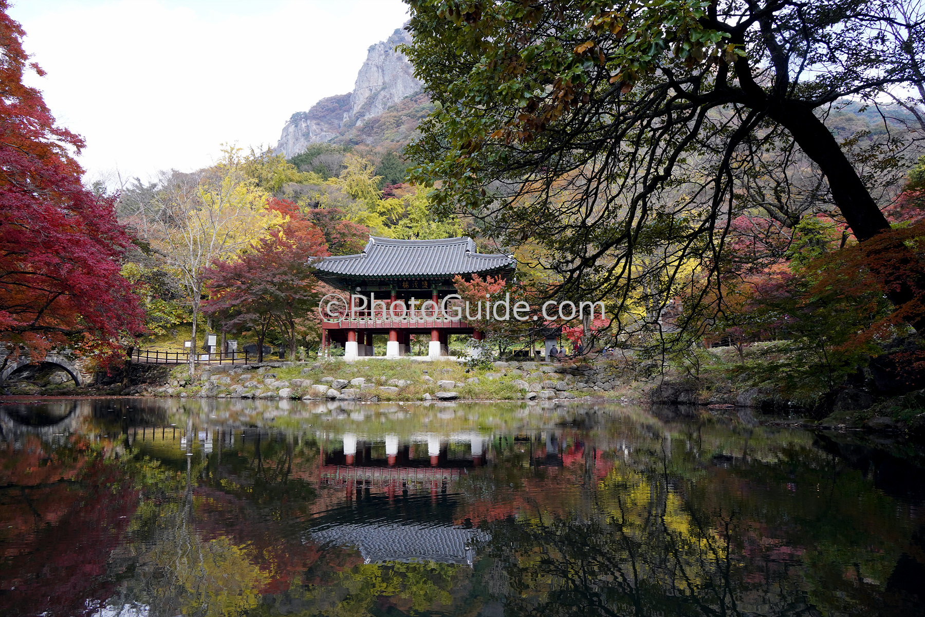 두 군데 모두 가을 단풍으로 우열을 가리기 힘들 정도로 아름답기는 합니다. 그러나 백양사에는 하얀 백학봉을 뒤로하고 계류가 흐르다 수정 같이 맑은 못을 이루는 자리에 쌍계루(雙溪樓)가 있기에 가을 단풍의 절경이 더욱 멋지게 보입니다.