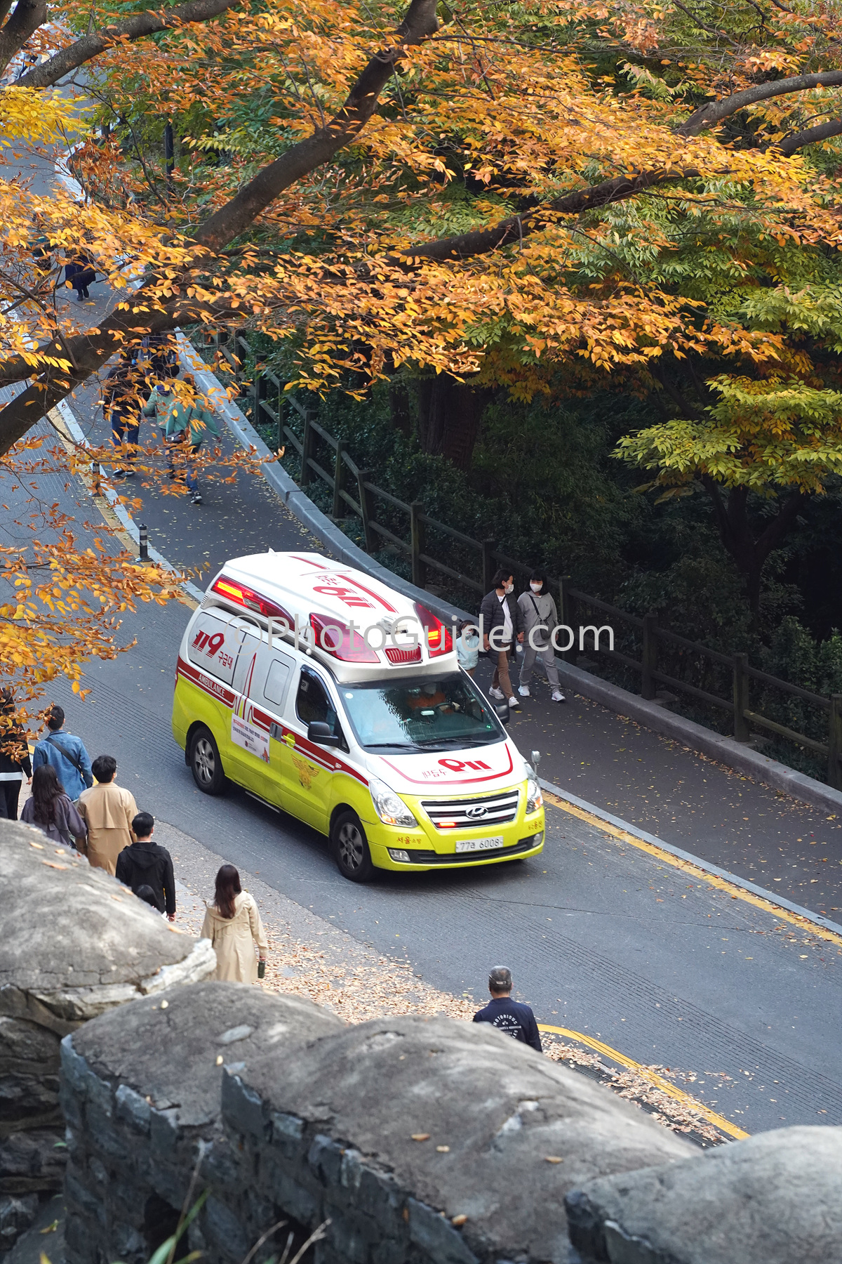 남산에 갑자기 119 응급차가 달려왔습니다.