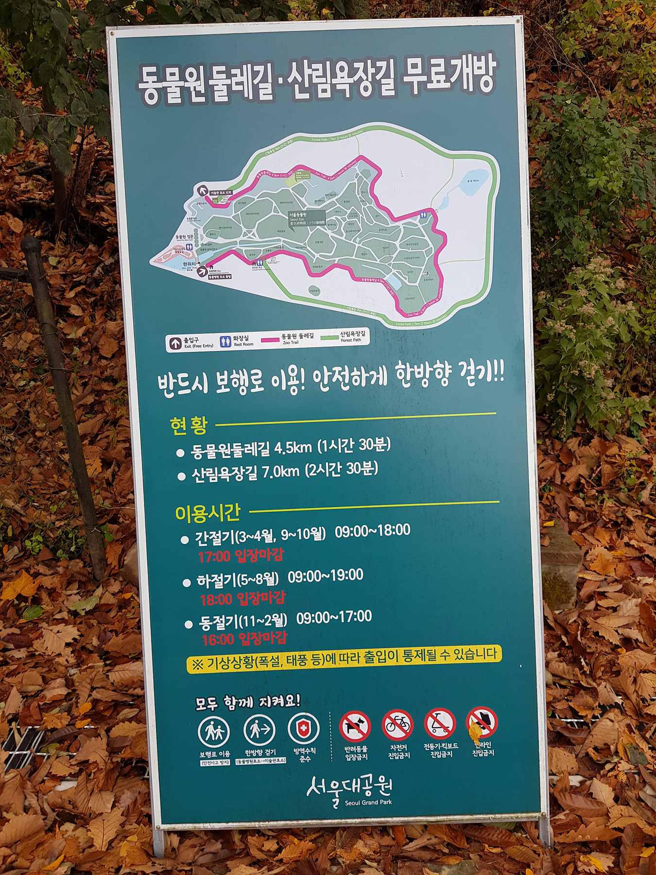 서울대공원 둘레길 이용시간은 엄수