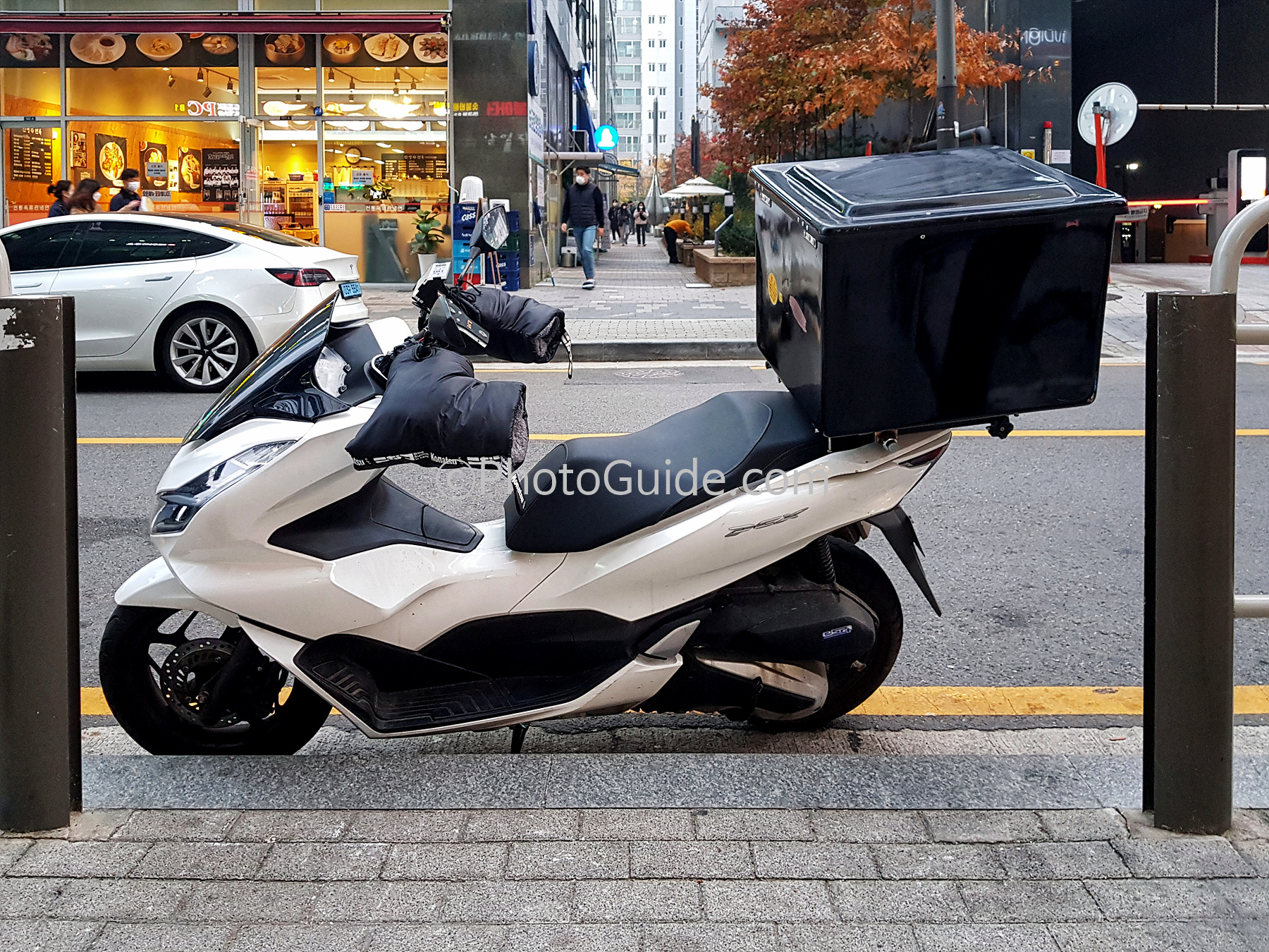 어느 빌딩 앞을 가더라도 배달차량과 배달오토바이들이 많이 있습니다.