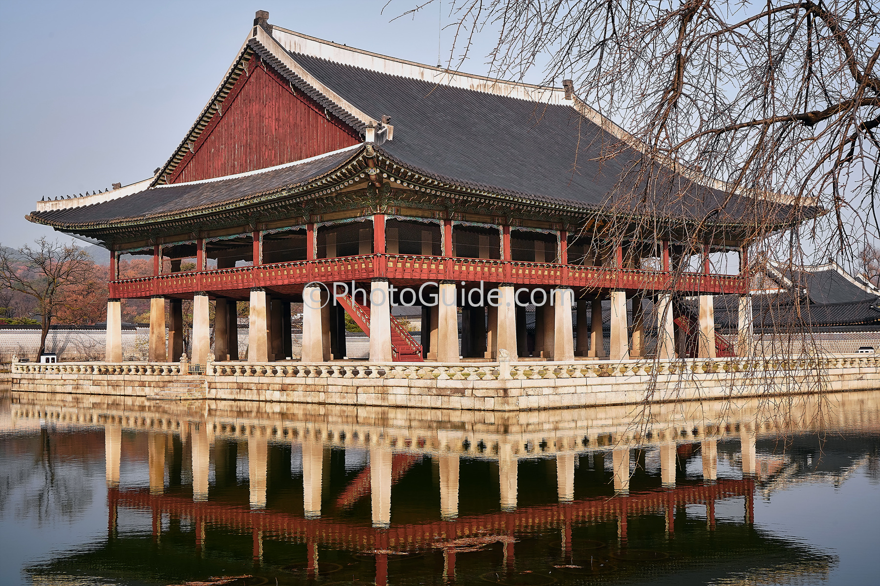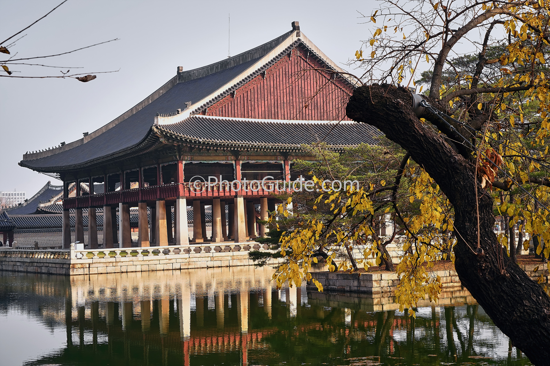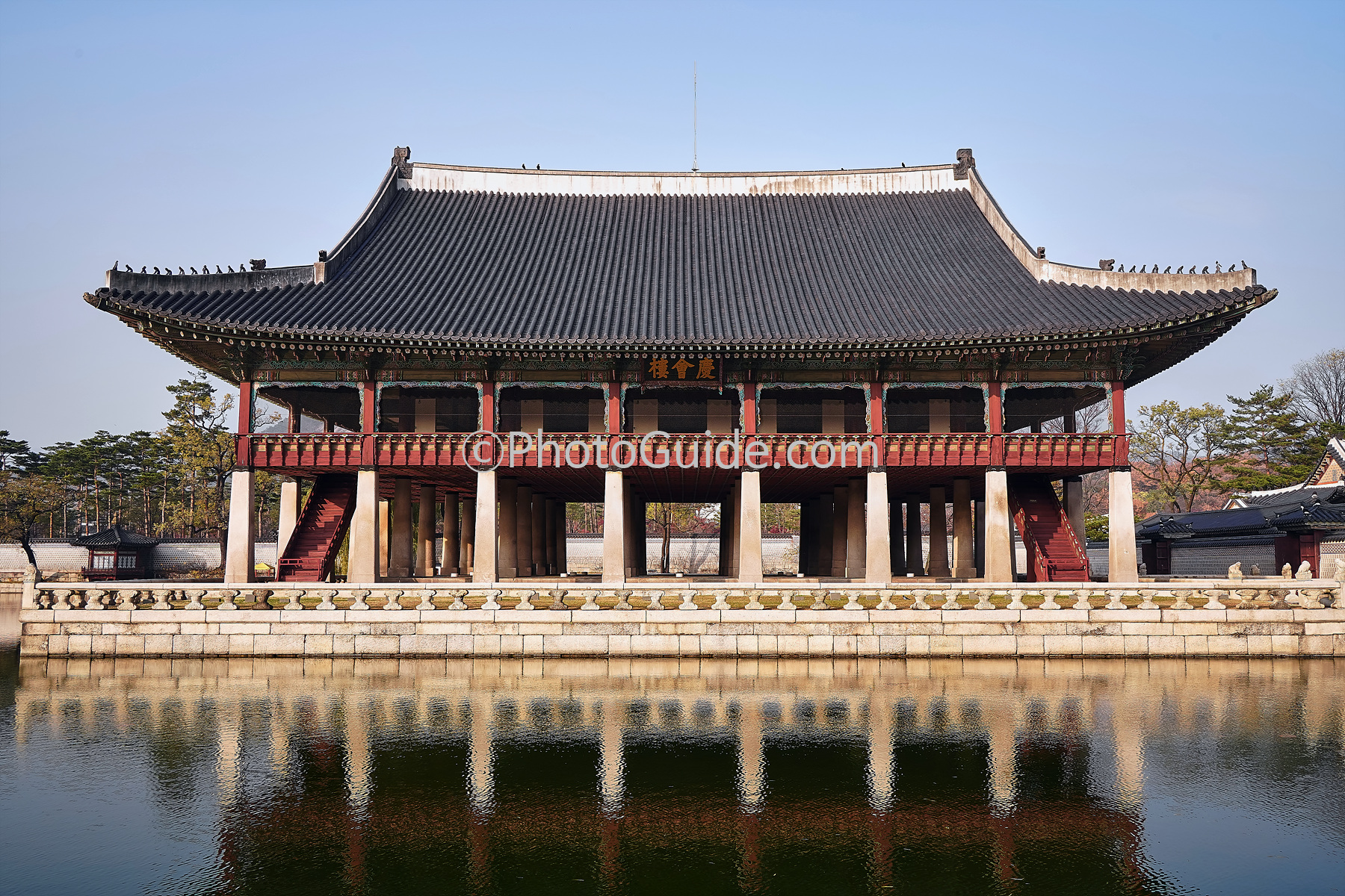 경복궁 창건 당시는 작은 누각에 불과했지만 태종 12년(1412)에 크게 연못을 파고 지금과 같은 규모로 만들어졌습니다.