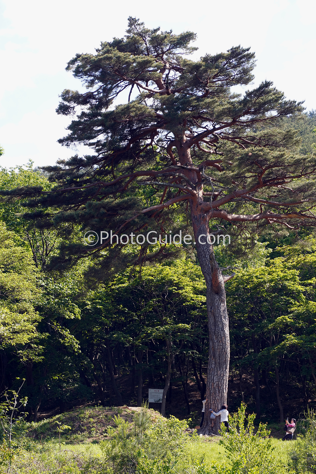 수십 그루의 아름드리 금강소나무들도 있었던 곳인데, 극락전 지역의 왼쪽 산등성이에 고고하며 장엄하게 서있는 소나무 한 그루가 많은 사람들의 이목을 집중하게 만듭니다. 어떤 사람들은 떼로 몰려가서 크기 어떤지 서로 손을 잡고 나무의 둘레를 재어보기도 합니다.