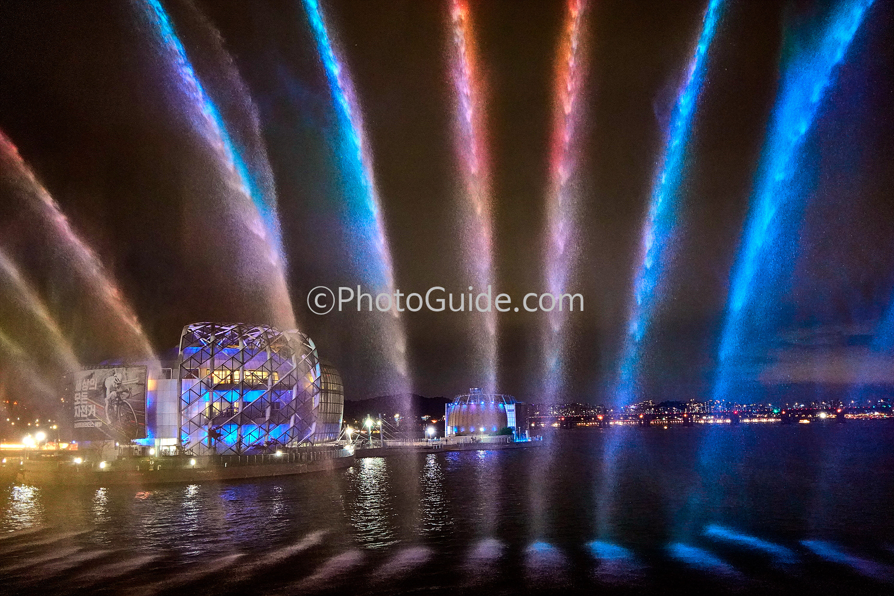 환상적인 한강의 야경이 무지개빛 분수로 더욱 아름답게 보이고 수채화 같은 풍경이 보여집니다.