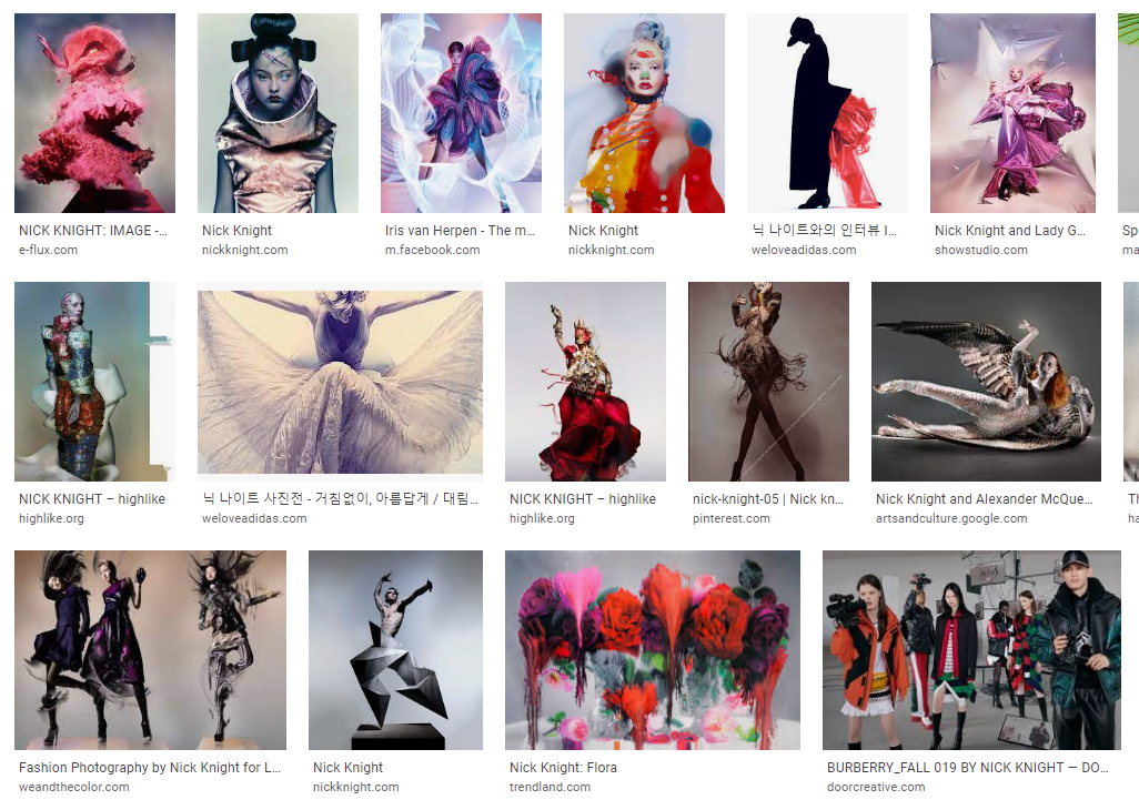 닉 나이트는 혁신적인 패션 이미지 메이커이다. 또한 "구상부터 완성까지 모든 창작 과정을 보여주는 것이 예술가, 관객, 예술 자체에 이롭다는 믿음을 바탕으로" 만들어진 선구적인 패션 웹사이트인 SHOW 스튜디오의 디렉터이다. 나이트는 패션을 보여주기 위한 매체로 디지털 필름을 채택한 최초이자 가장 주목받는 이미지 메이커 중 하나였다.