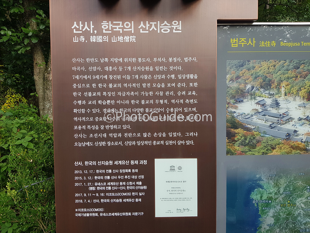 법주사는 2018년 7월 3일 양산 통도사, 영주 부석사, 안동 봉정사, 순천 선암사, 해남 대흥사, 공주 마곡사와 함께 유네스코 세계유산에 등재되어 한국의 대표적인 사찰로 자리매김합니다.